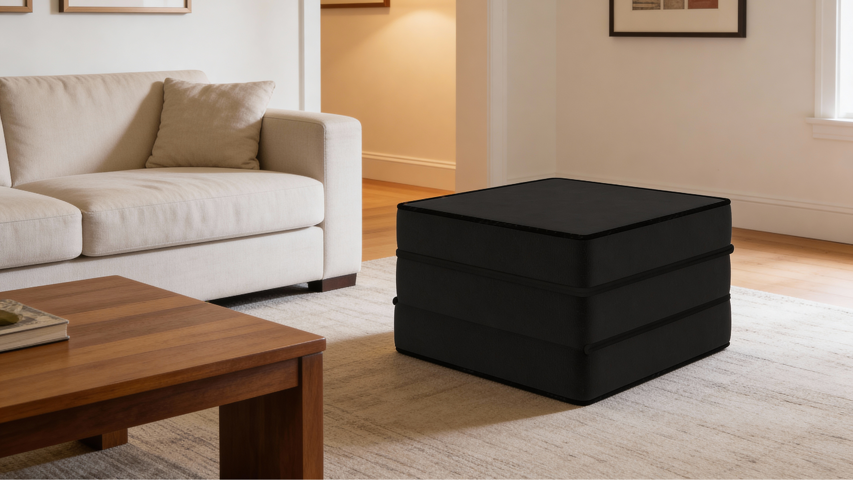 Puff Cama Solteiro Multiuso 3 Em 1 Preto 60x60x30 Plumatex